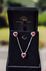 Brinco com coração de zirconia vermelha, cravejado ao redor de zirconia branca na prata 925. Colar com coração de zirconia vermelha, cravejado ao redor de zirconia branca na prata 925 na corrente veneziana de prata.